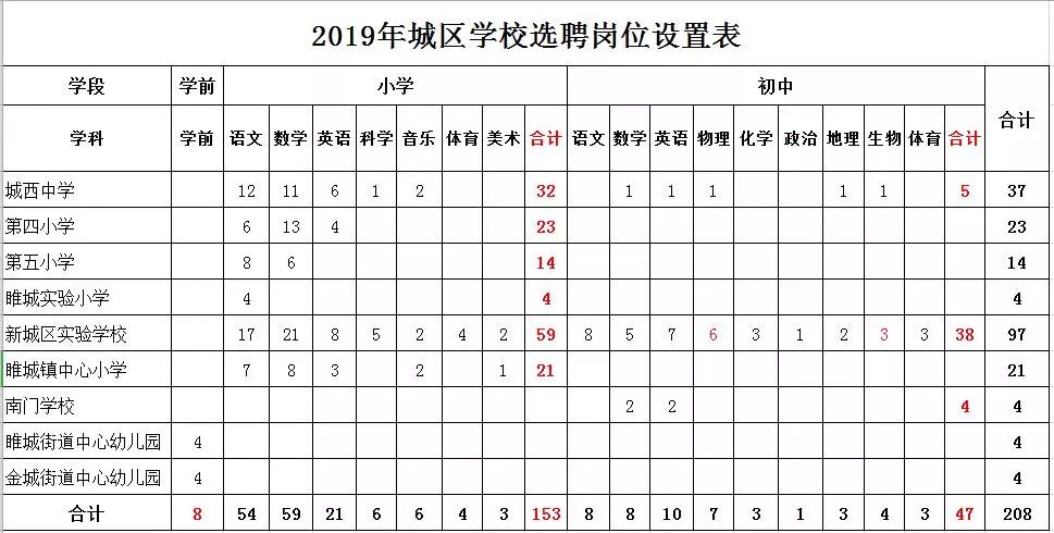 面向全县公办中小学(幼儿园)为城区学校选聘208名教师,其中含8名差拨幼儿园教师(2019年我县8名免费男幼师毕业,按省、市有关文件精神必须定向招聘在农村公办幼儿园。因农村公办园已无空编,经和编制部门研商,在新教师招聘时先将岗位定在农村公办园,具体为:古邳镇中心幼儿园2人、官山镇中心幼儿园1人、李集镇中心幼儿园1人、庆安镇中心幼儿园2人、凌城镇中心幼儿园1人、王集镇中心幼儿园1人,后从上述幼儿园中按相对应人数选调8名差拨幼师到街道中心幼儿园,以腾出编制为8名免费男幼师办理入编手续),具体岗位见附件1。